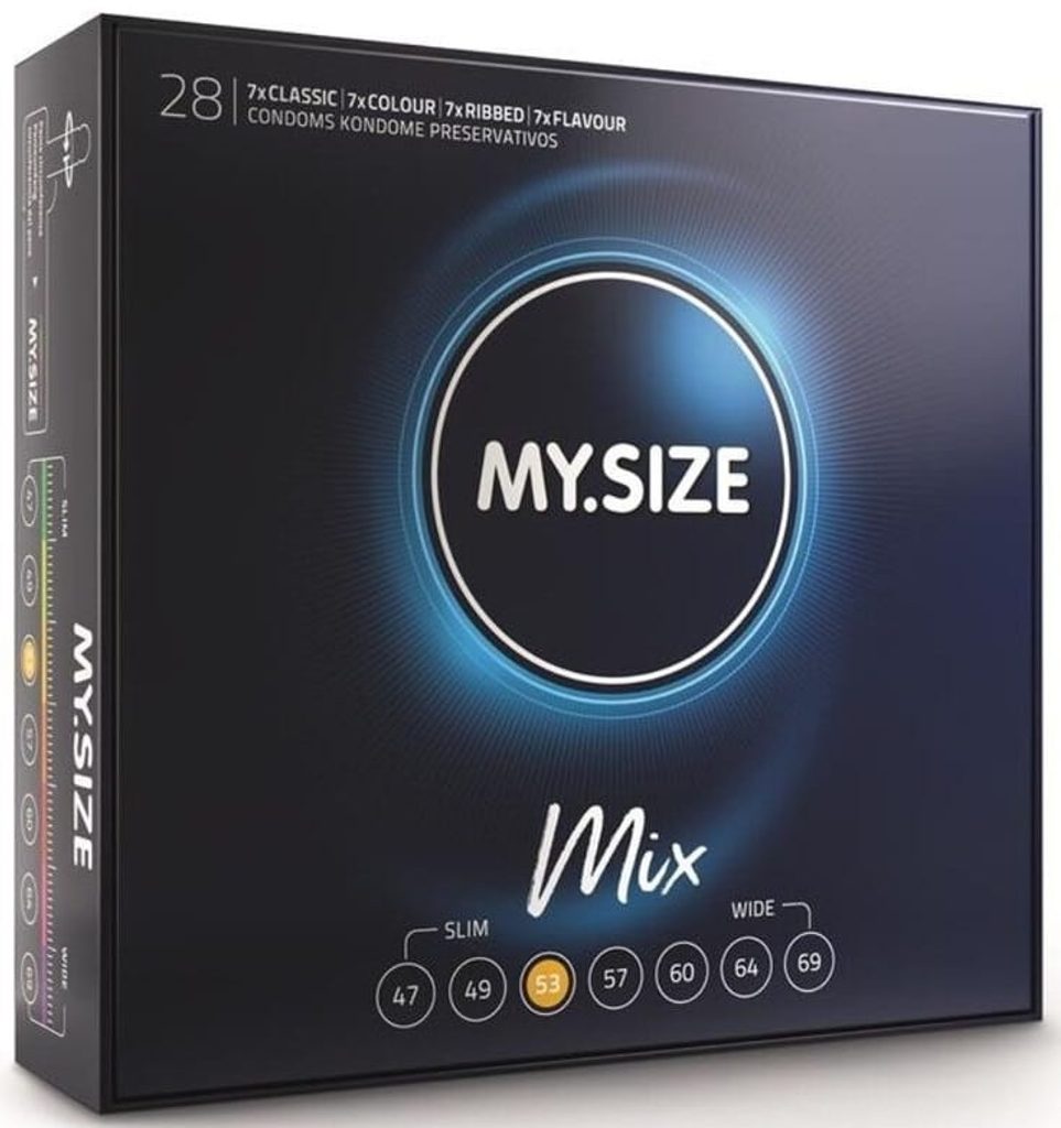 My.Size je značka kondómov, ktorá sa dodáva v siedmich rôznych veľkostiach.Výhody sú zrejmé: vyššia bezpečnosť a viac pocitov pri sexe.Kondómy My.Size zaisťujú optimálne padnutie a pohodlie tým, že zabraňujú nepríjemnému pohybu kondómu, poskytujú ochranu proti nechcenému otehotneniu a proti pohlavne prenosným chorobám.