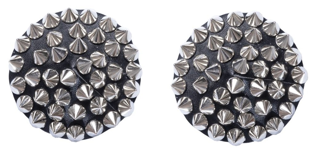 Okrúhle Nipple Stickers od značky Cottelli ACCESSORIES sú vyrobené zo štýlovej čiernej imitácie kože. Sú ozdobené cvokmi v tvare hrotov, ktoré dodávajú dráždivý vzhľad. Nálepky sa jednoducho aplikujú na pokožku a možno ich používať opakovane – stačí po zložení znovu priložiť ochrannú fóliu pred uložením.