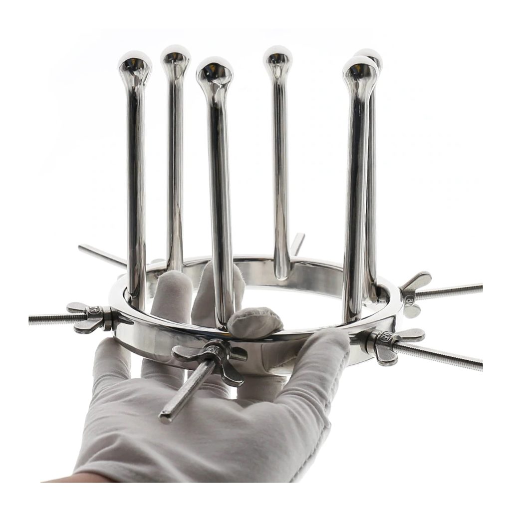 Tento kovový doplnok Kinksters Metal Anal Retractor vám umožní rozšíriť análny otvor a dosiahnuť veľkolepú dilatáciu. Je vyrobený z vysoko kvalitnej nerezovej ocele a vytvorí maximálny otvor 9,5 cm vďaka 6 zásuvným tyčiam. Na dĺžku meria 8 cm. Je navrhnutý pre ľahké vkladanie a vyberanie, je ideálny pre začiatočníkov aj skúsených hráčov. Jeho kompaktná veľkosť umožňuje ľahké nosenie so sebou, nech idete kamkoľvek, čo vám umožní oddať sa svojim túžbam, kedykoľvek vás napadne.