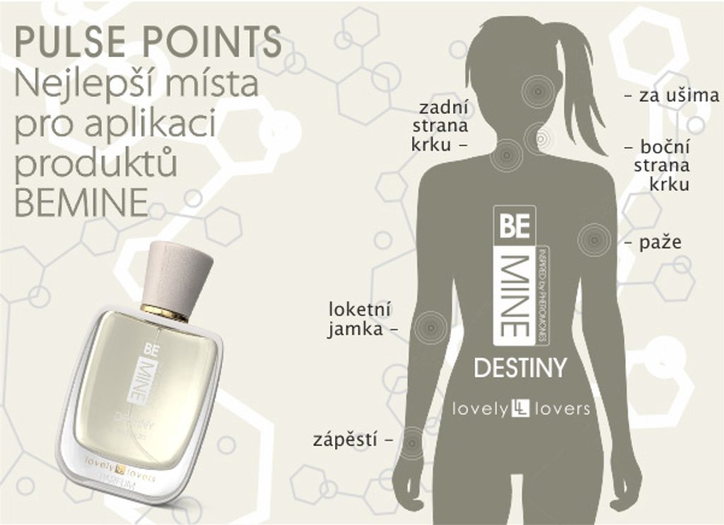 Dámsky parfém na zvýšenie sexuálnej príťažlivosti na základe I-L-Molecules Formula s 20% koncentráciou vonných atraktantov, tzv. feromóny pre ženy od značky Lovely Lovers, to je vôňa zo série BeMine Destiny.