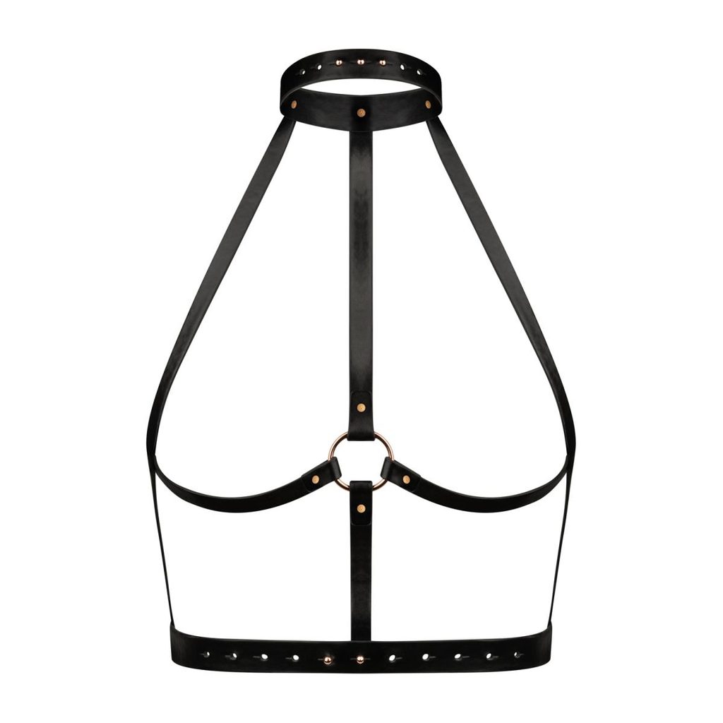 Vďaka svojej všestrannosti je tento postroj ideálny na vytvorenie odvážneho outfitu na večer alebo na experimentovanie s bondážnymi hrami. Stredový kovový krúžok ponúka možnosť pripojenia vodítok, pút či reťazí, čo otvára dvere k neobmedzenej kreativite počas vašich hier.