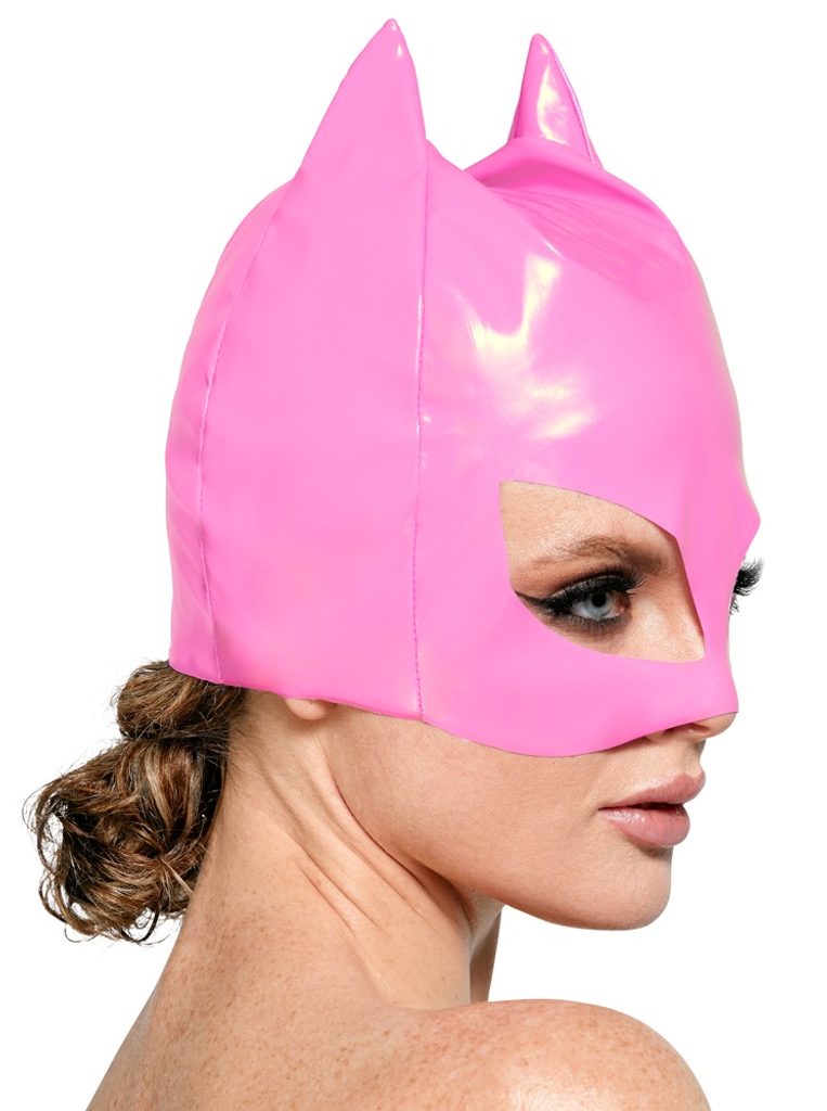 Ružová vinylová maska Black Level – zmyselný mačací vzhľad pre odvážne hry