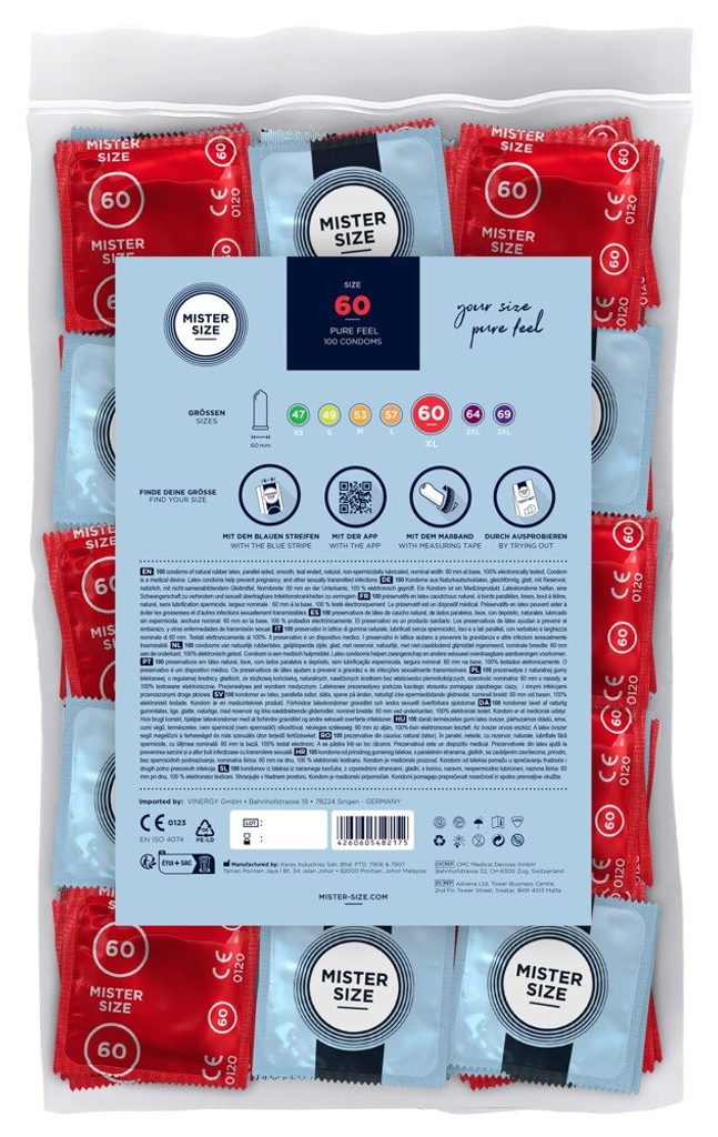 Výkonný penis má mnoho výhod - pokiaľ viete, ako ho dobre používať. A samozrejme musí fungovať aj antikoncepcia bez toho, aby ste zakaždým mysleli na to, že sa váš najlepší kúsok dusí v príliš tesnom kondóme. S MISTER SIZE 60 do seba všetko perfektne zapadá a vy sa konečne môžete plne sústrediť na dobré pocity. Užite si ten okamih a nechajte sa unášať do nepredstaviteľných výšin.