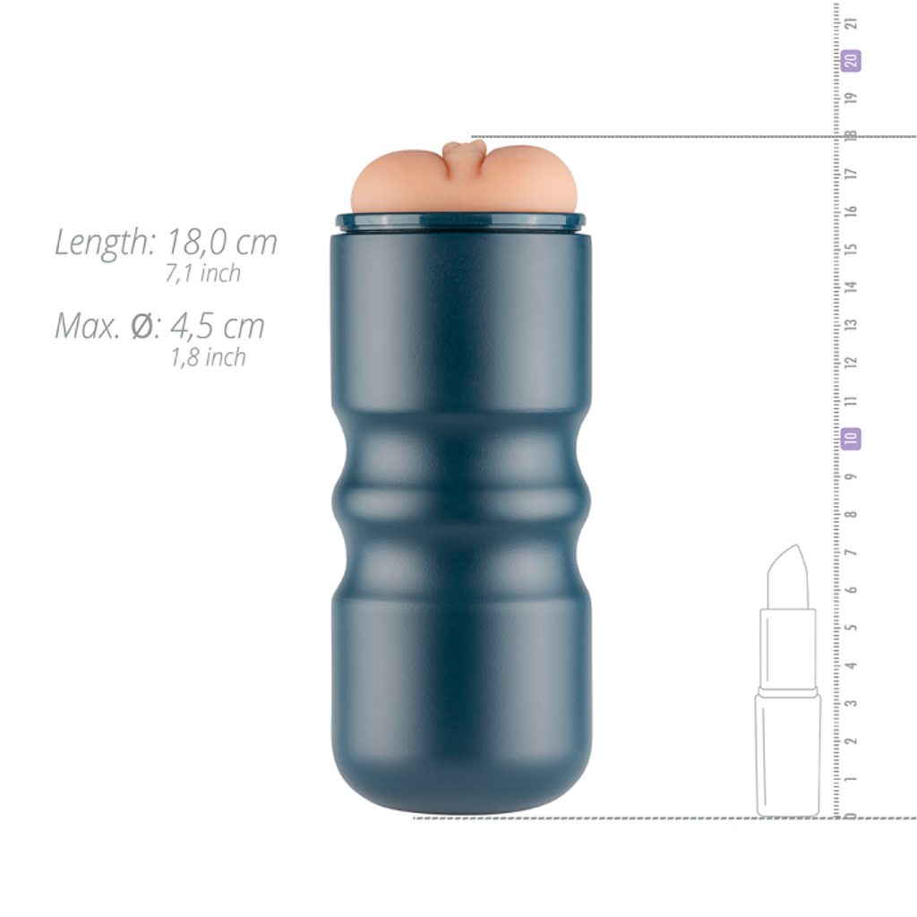 Obal vyrobený z modrého PVC. Vagína je z príjemného a mäkkého materiálu, ktorý na dotyk pripomína ľudskú pokožku. Vagína je vyberateľná. Jedná sa o pružný materiál, ktorý sa prispôsobí dokonale vašej veľkosti.