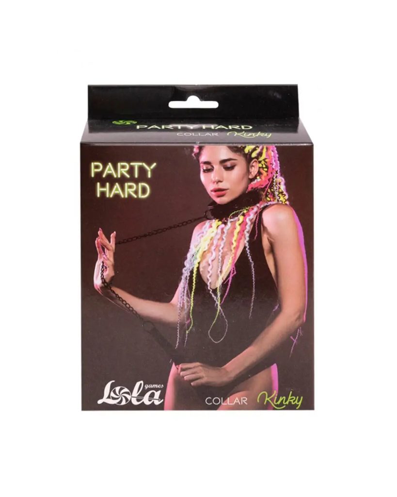 Nastaviteľný obojok s vodítkom z kolekcie Party Hard. Je vyrobená z polyuretánu bez obsahu ftalátov. Celková dĺžka obojku je 48 cm, šírka 3 cm. dĺžka vodítka je 81 cm, hmotnosť 222 g. Obojok sadne akejkoľvek veľkosti. Vyrobené v čiernej farbe.