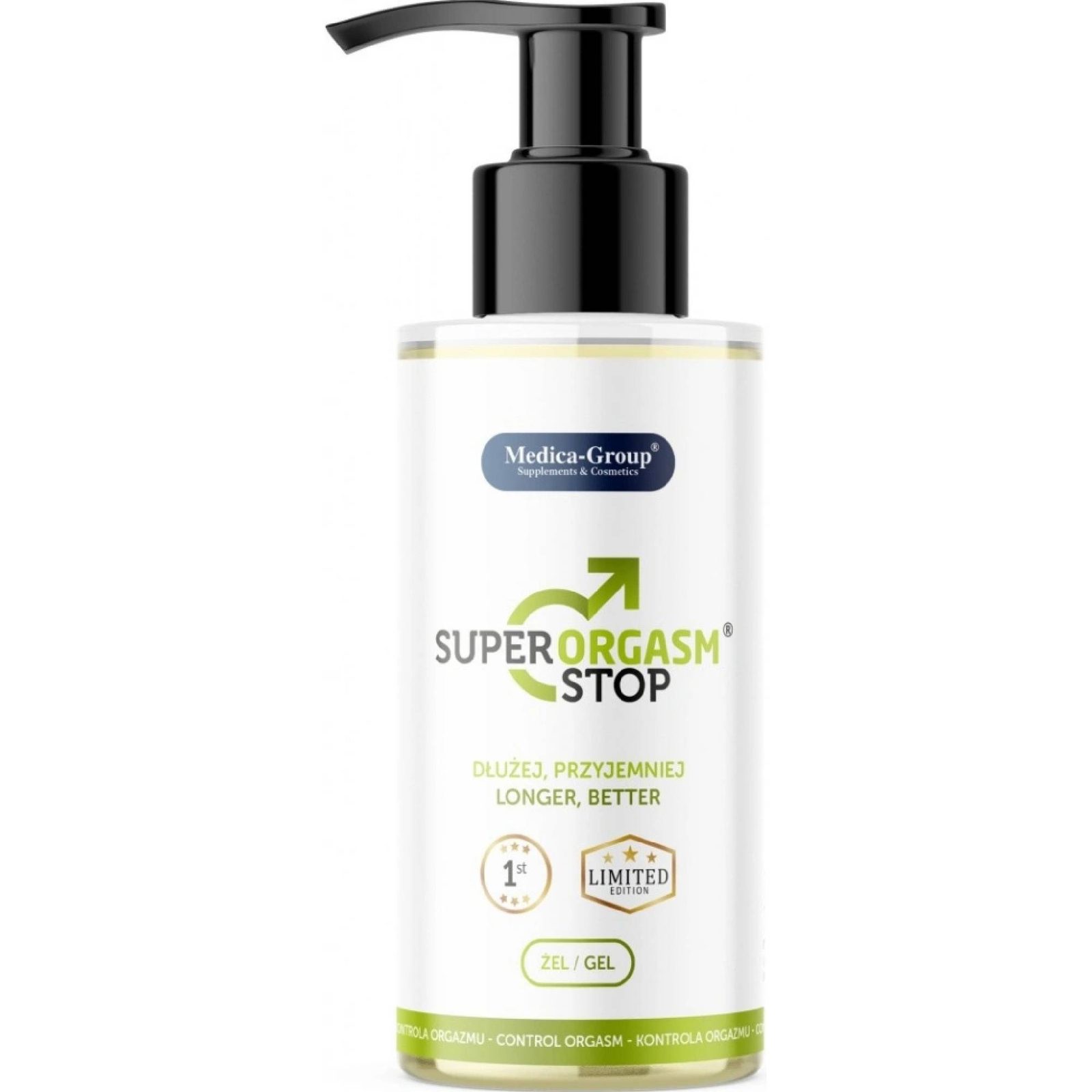 Super Orgasm Stop Gel pomáha oddialiť ejakuláciu tým, že znižuje precitlivenosť. Ľahká, rýchlo vstrebateľná textúra nezanecháva na pokožke lepkavý pocit a je príjemná aj pri častejšom používaní. Obsahuje rastlinné výťažky a hydratačné zložky, ktoré chladia, starajú sa o pokožku a zvyšujú výdrž.