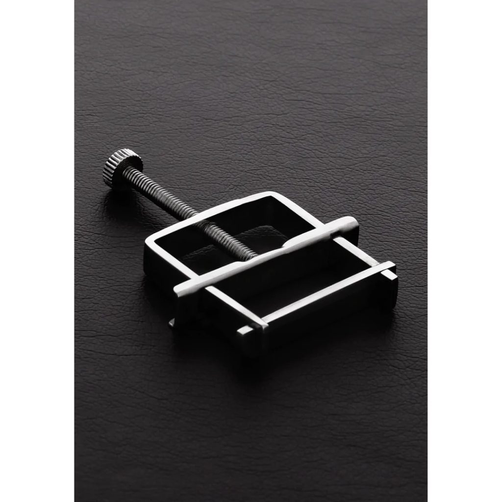 Tieto jedinečné kovové svorky na bradavky sú vyrobené z jedného kusu nehrdzavejúcej ocele a fungujú ako malý lis. Pomocou skrutky s kolieskom možno presne nastaviť intenzitu tlaku – čím viac ju utiahneš, tým silnejší stisk a menšie šmýkanie. Vďaka pevnej konštrukcii a precíznemu spracovaniu sú svorky odolné, stabilné a ideálne na presnú kontrolu stimulácie.