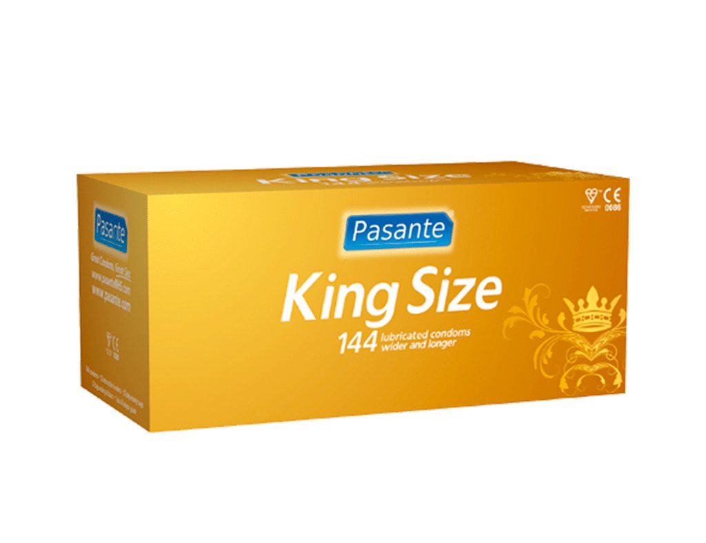 Kondómy Pasante King size pre tých, čo sú obdarení kráľovskú veľkostí. Veľkosť XXL: Šírka: 60 mm, Dĺžka: 200 mm.