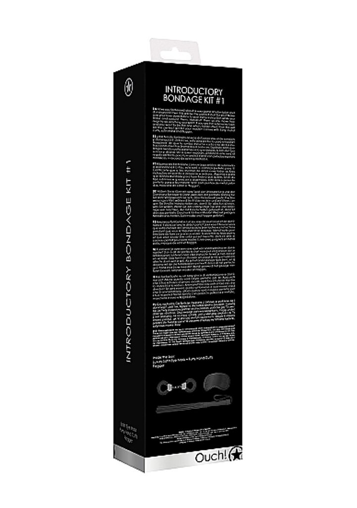 Ouch! Introductory Bondage Kit je elegantná a veľmi kvalitná sada pre vaše BDSM hry! Dodáva sa s chlpatými kovovými putami, saténovou maskou a bičom.